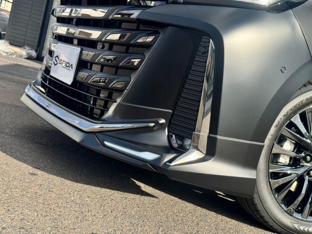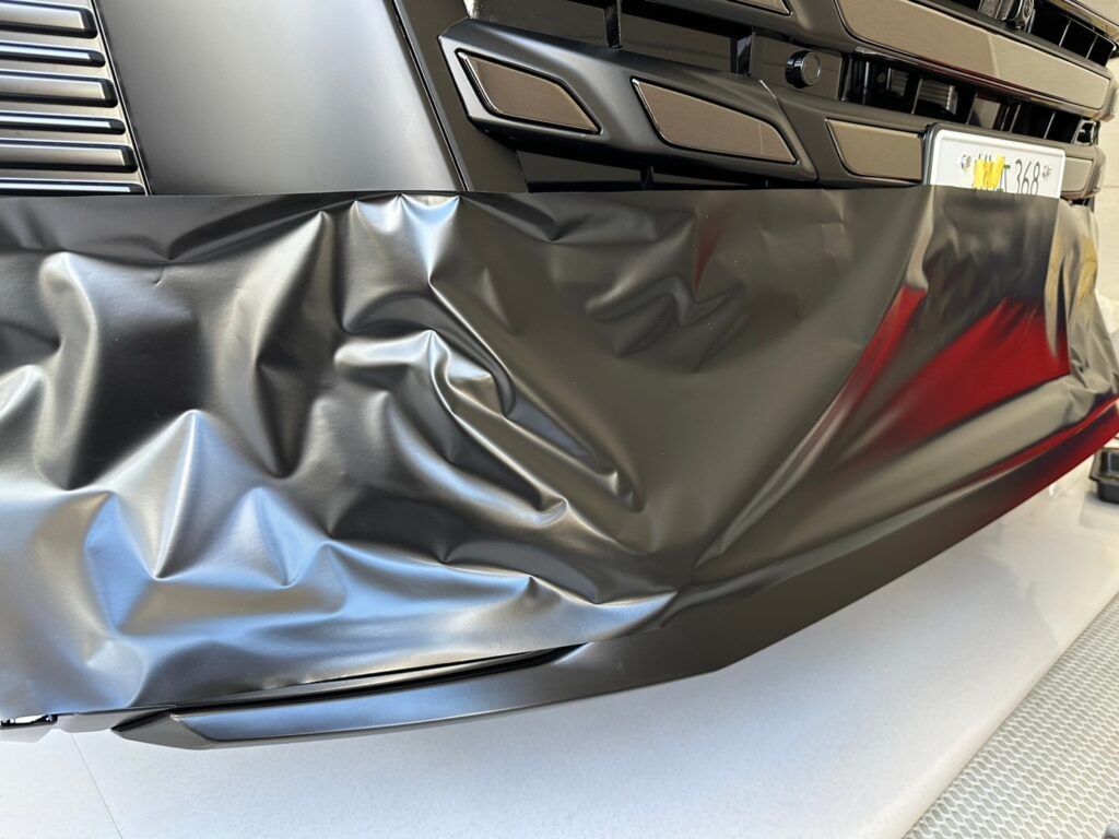 モデリスタのエアロ部分は、マットプロテクションとの違いを比較するために、マットブラックのラッピングフィルムで施工しております!