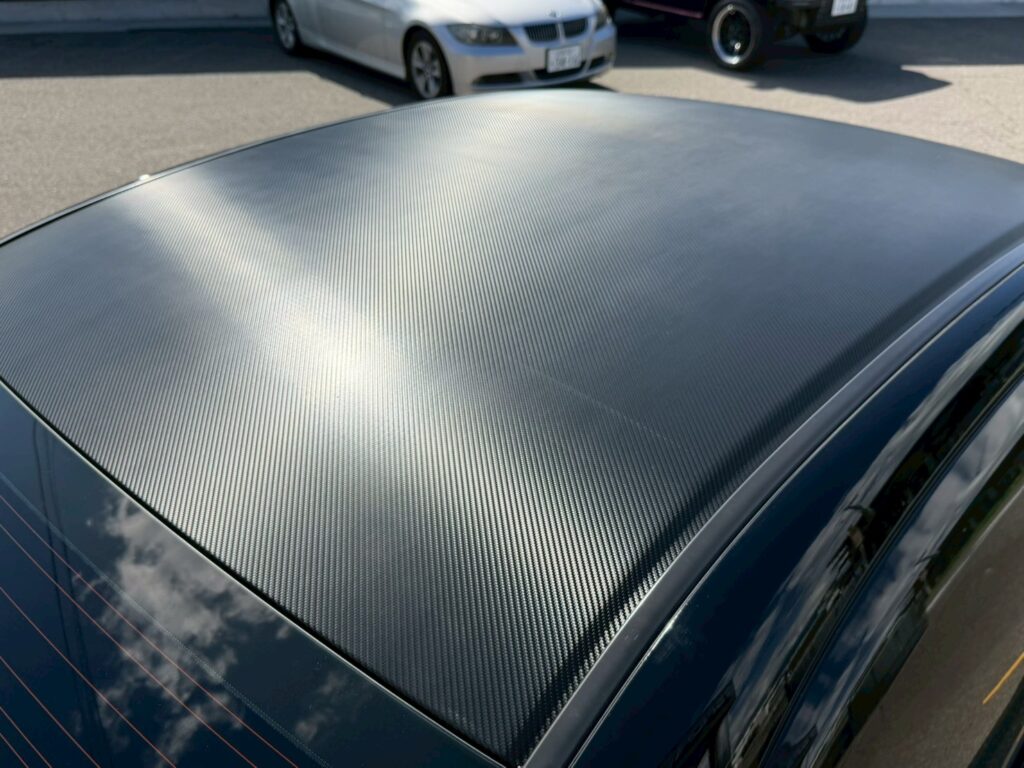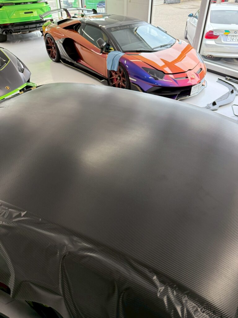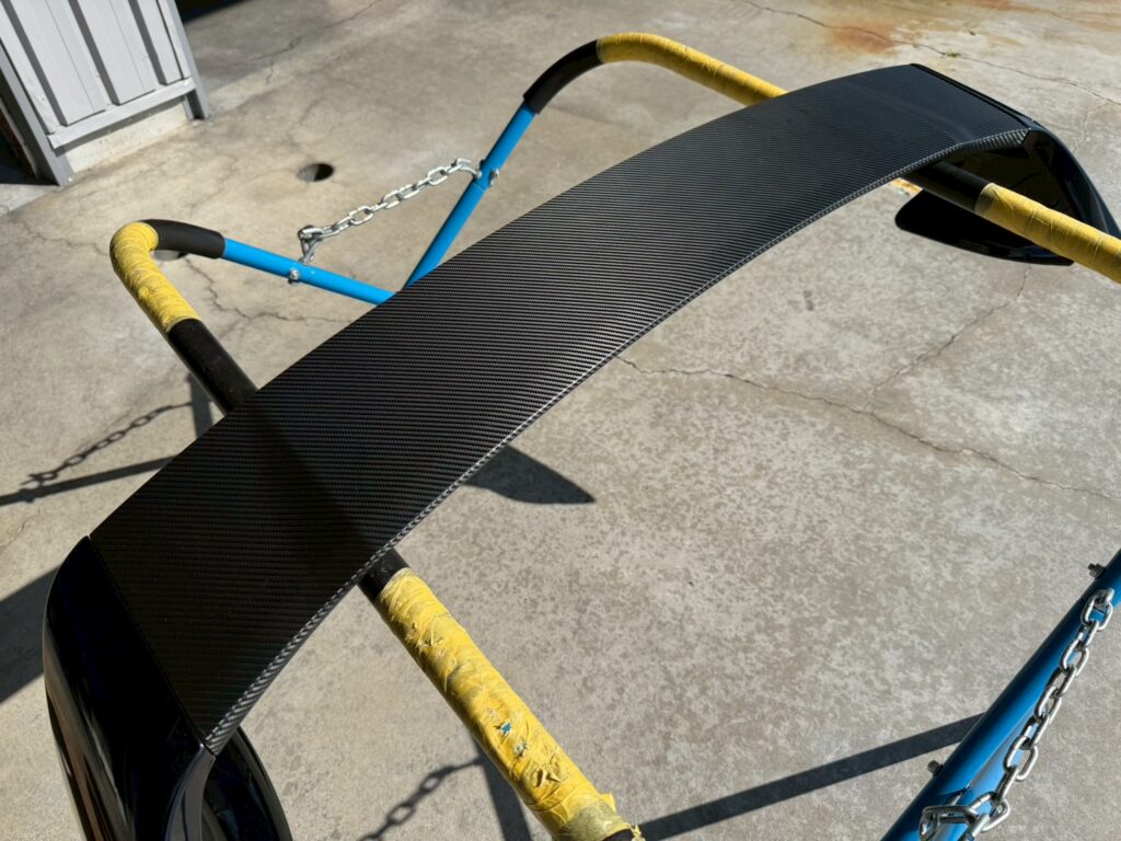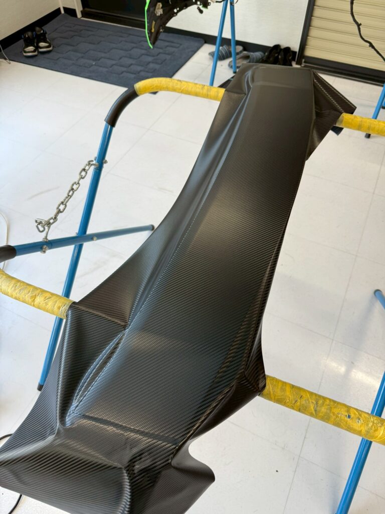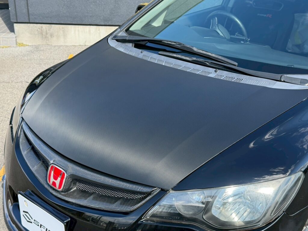 ボンネット、ルーフ、ウィングへドライカーボン柄のラッピングを施工させていただきました!